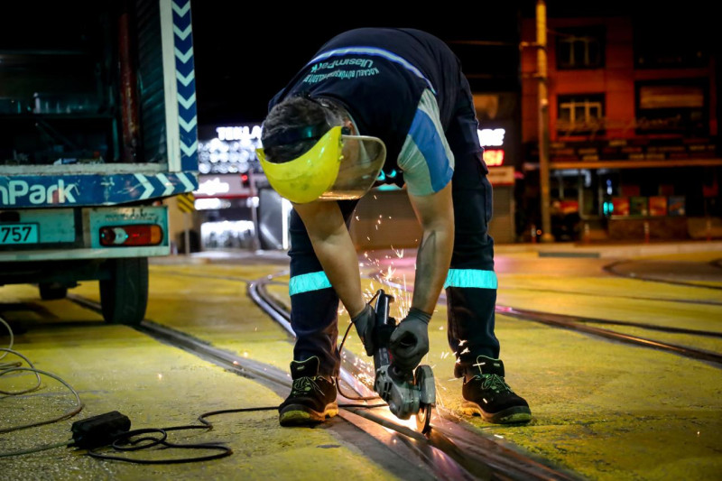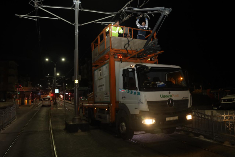 Günlük ortalama 55 bin yolcu taşıyan tramvayın günlük bakımı için gece saatlerinde sahaya inen UlaşımPark ekibi, güvenli ulaşım için rayların bakımını aksatmıyor. Kocaeli’nin demir ağları olan tramvayda gündüz yolcular taşınırken gece saatlerinde ise rayların bakımı yapılıyor. Yolculuğun olmadığı saatlerde bakımı yapılan raylarla birlikte hem hattın güvenliği hem de yolculuk konforu en üst seviyede tutuluyor.