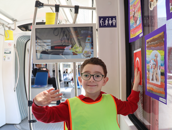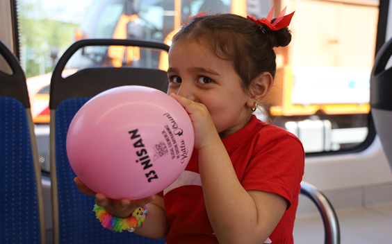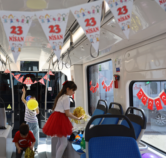 23 Nisan Coşkusu Tramvayda minik ellerin hazırladığı rengarenk süslemelerle tramvaylarımız bayram havasına büründü. Ulaşımpark olarak çocuklarımızın sevincine ortak olduk, bu özel günü birlikte kutladık.