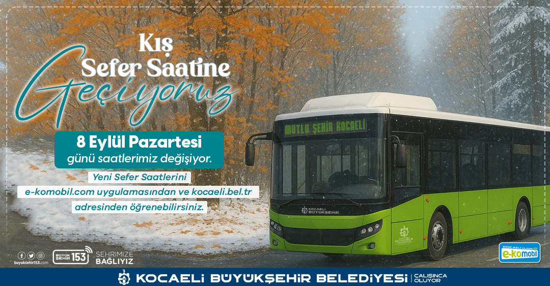 Kocaeli Büyükşehir Belediyesi, 2025-2026 eğitim ve öğretim yılının başlamasıyla birlikte 8 Eylül Pazartesi günü (yarın) kış sefer saatlerine geçiyor. Otobüs ve tramvay hatlarının sefer saatleri yeniden düzenlenerek, hem öğrencilerin hem de vatandaşların daha konforlu ve güvenli bir ulaşım hizmeti alması amaçlanıyor.