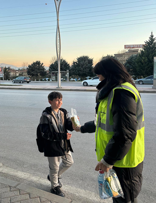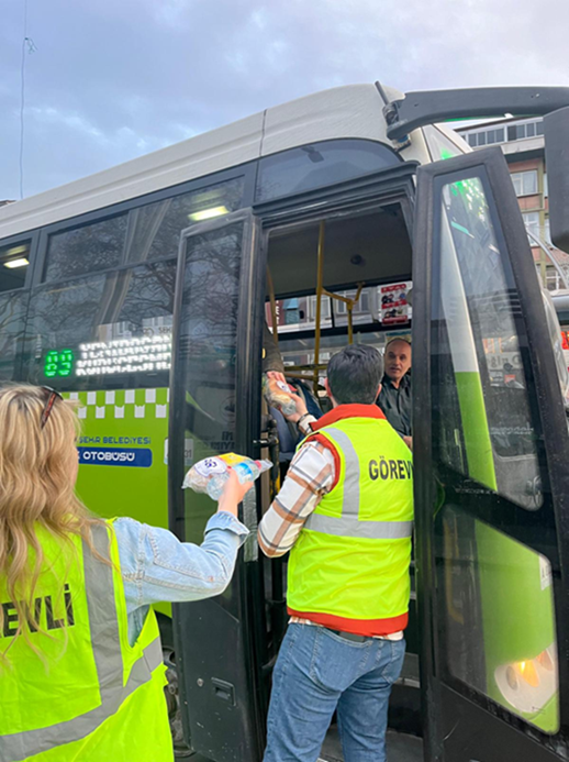 Ramazan ayı boyunca, iftar vaktine 10 dakika kala duraklarda bekleyen yolcularımıza kumanya ikramında bulunuldu. Toplam 16 durakta eş zamanlı olarak gerçekleştirilen organizasyon, 29 personelimizin özverili çalışmalarıyla hayata geçirildi.